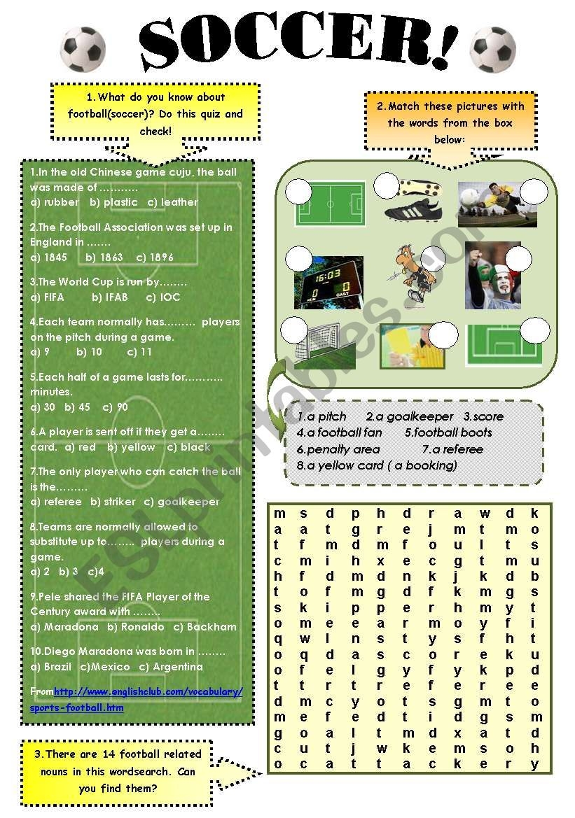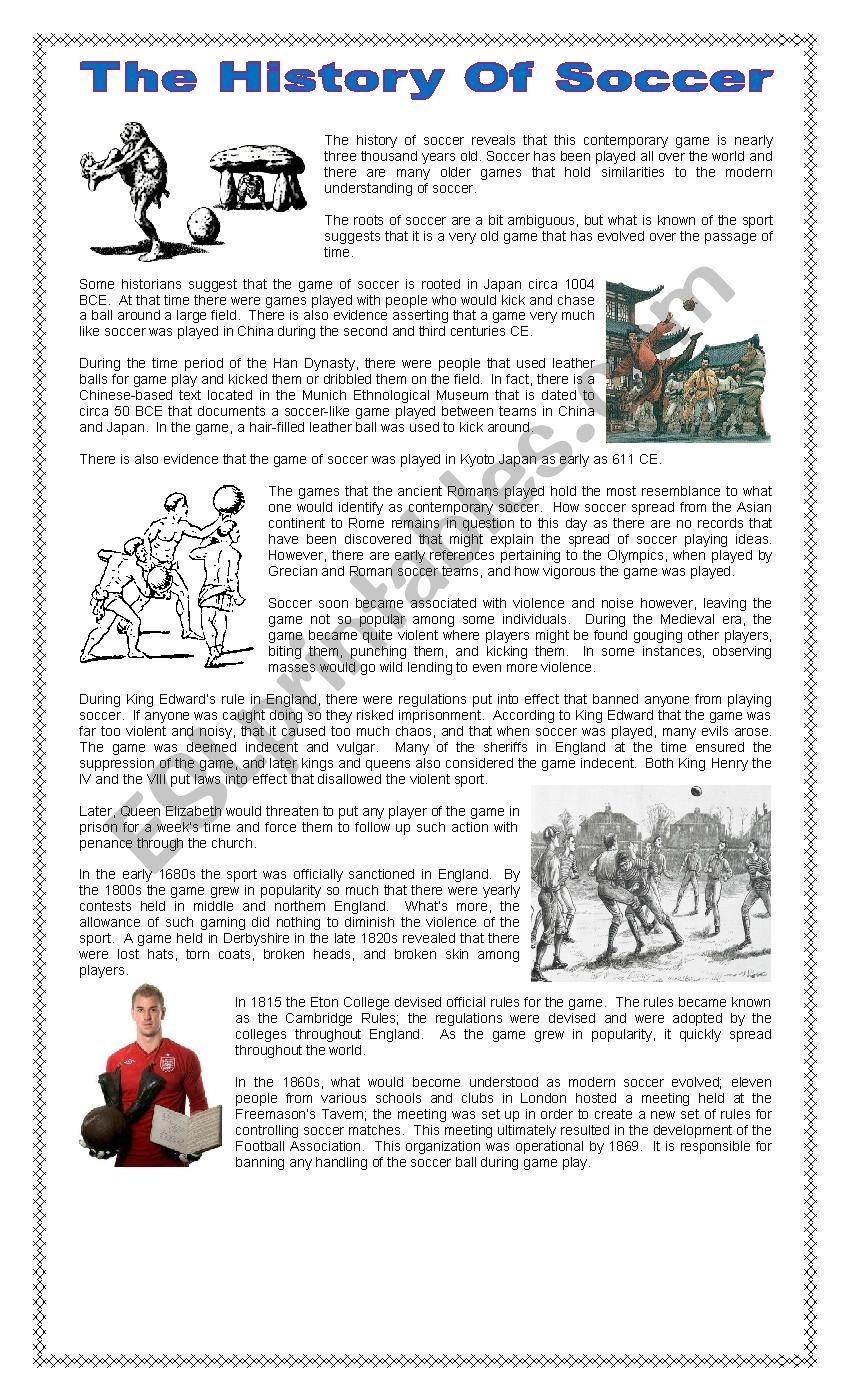 The History Of Football Soccer ESL Worksheet By Dianac4
