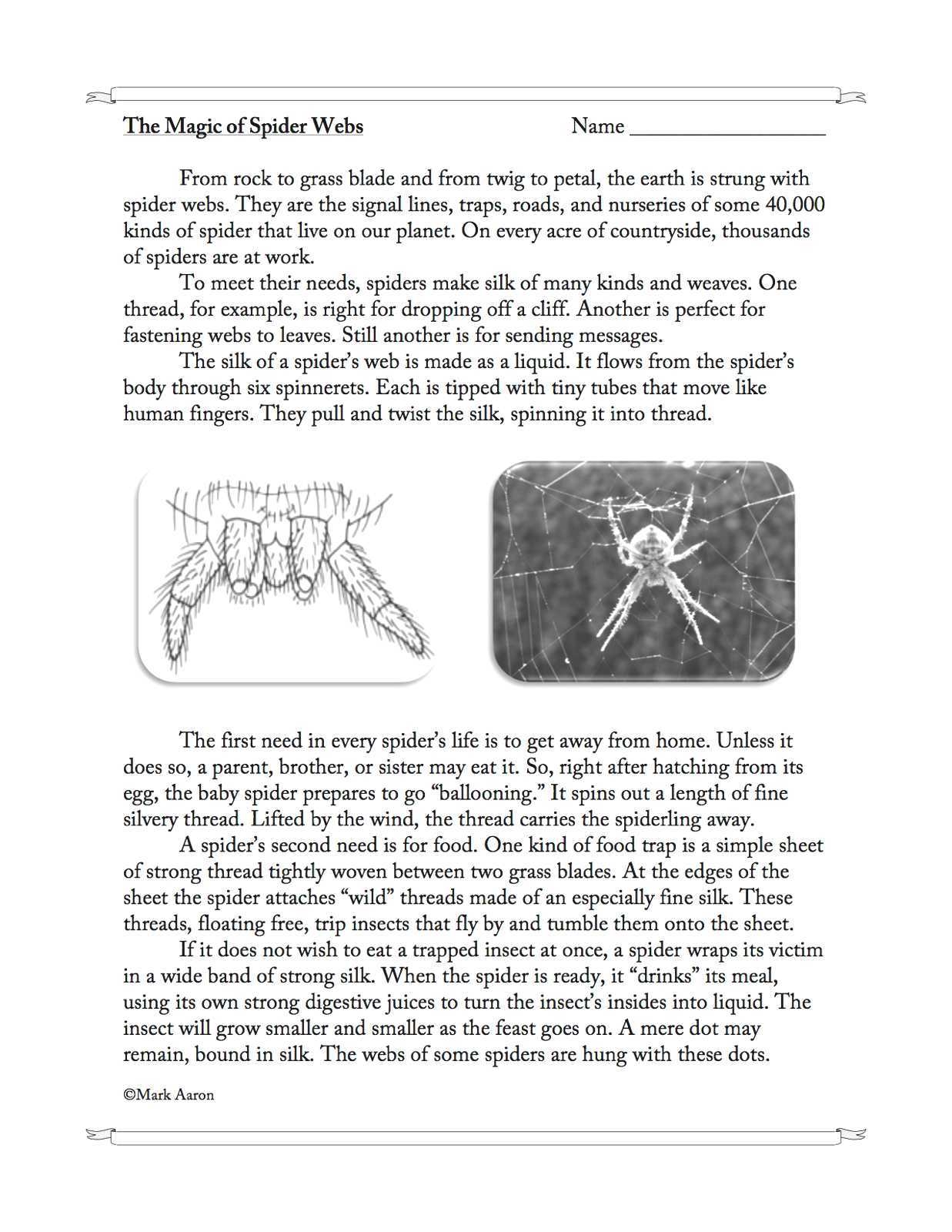 Spider Reading Comprehension Worksheet
