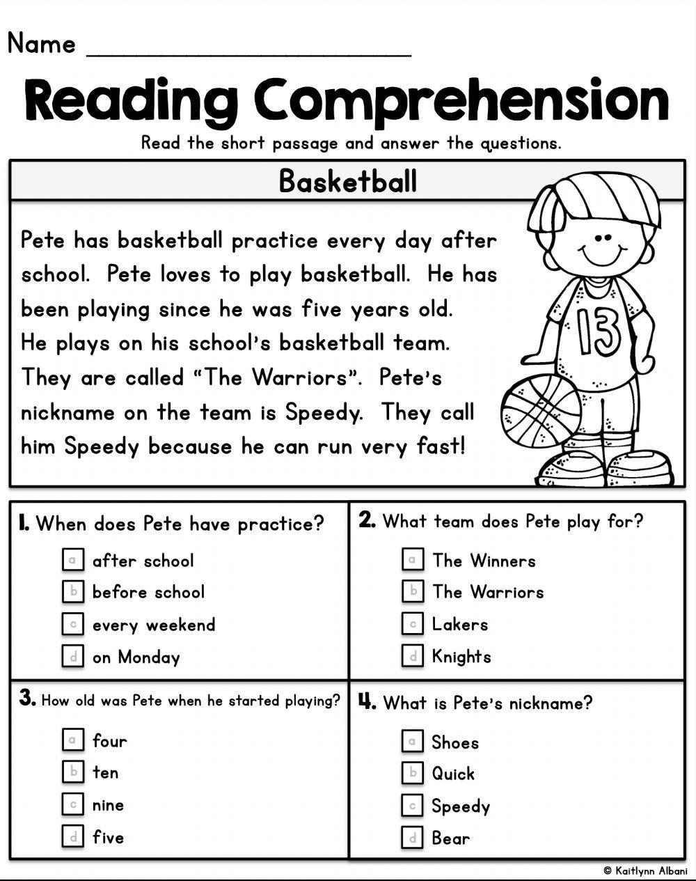 Sports Reading Comprehension Worksheets