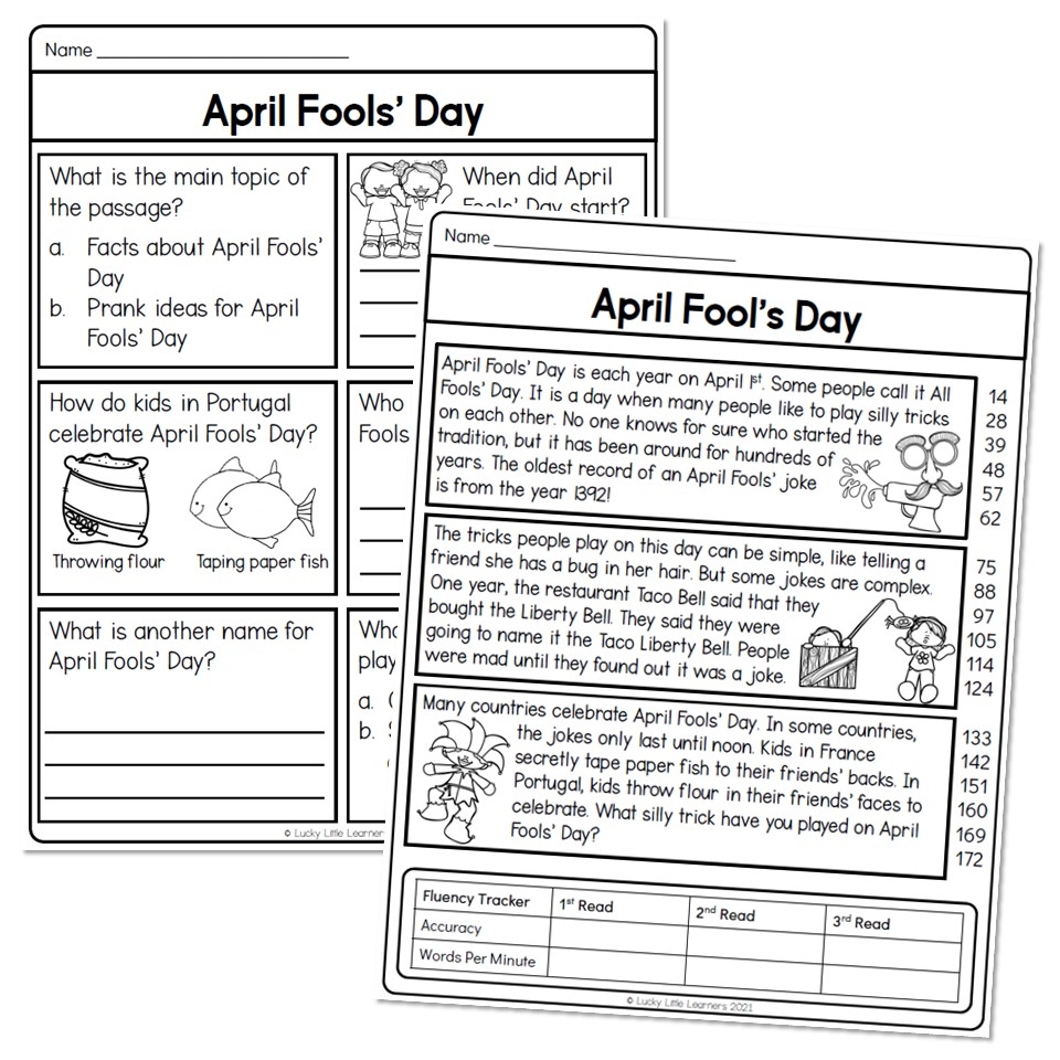 Spring Reading Passages April Fool s Day Lucky Little Learners