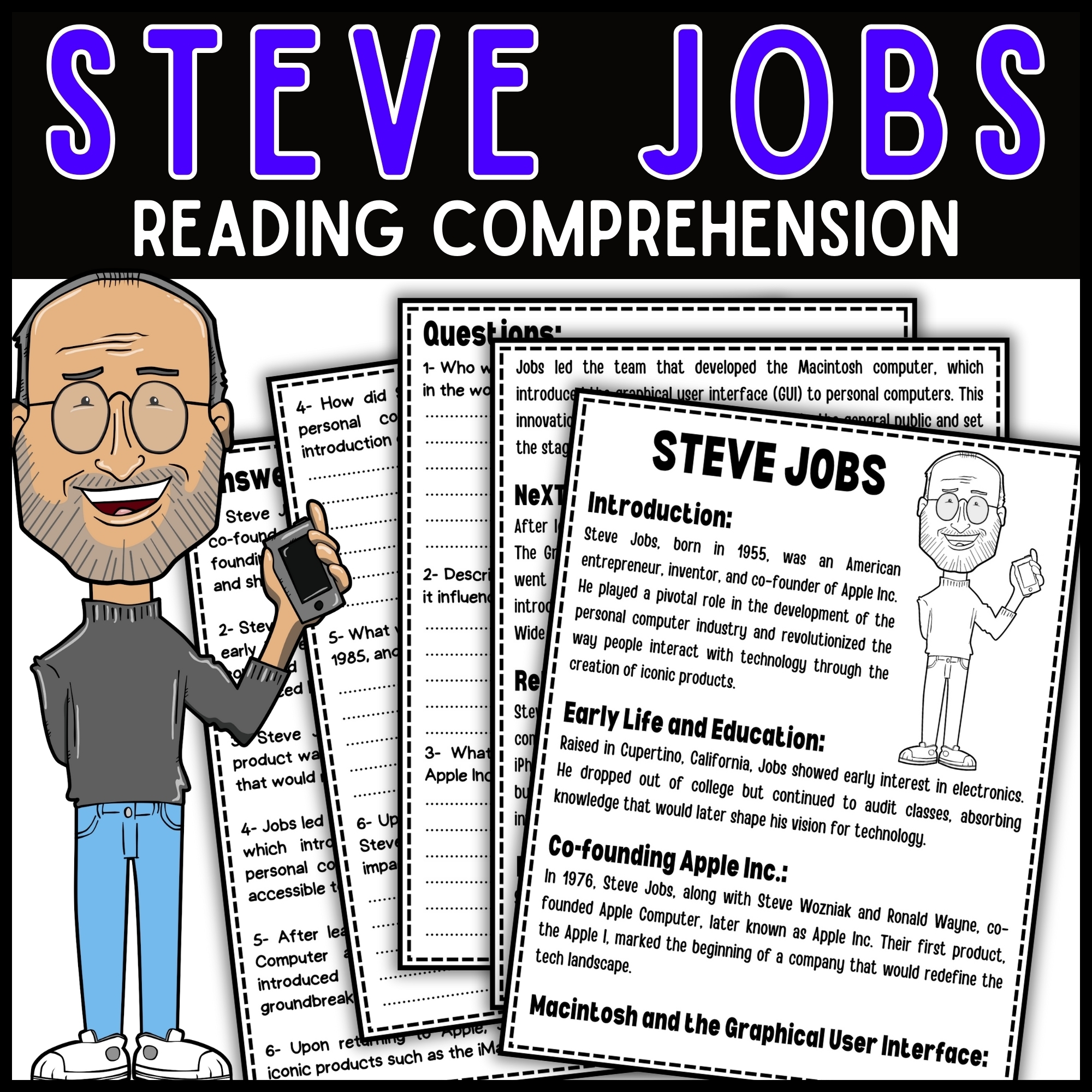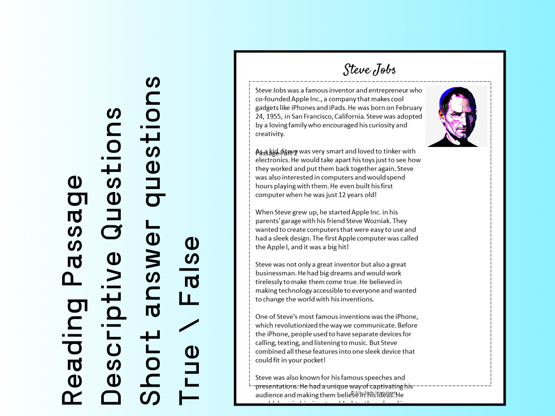 Steve Jobs Biography Reading Comprehension Passage Printable Worksheet PDF Teaching Resources