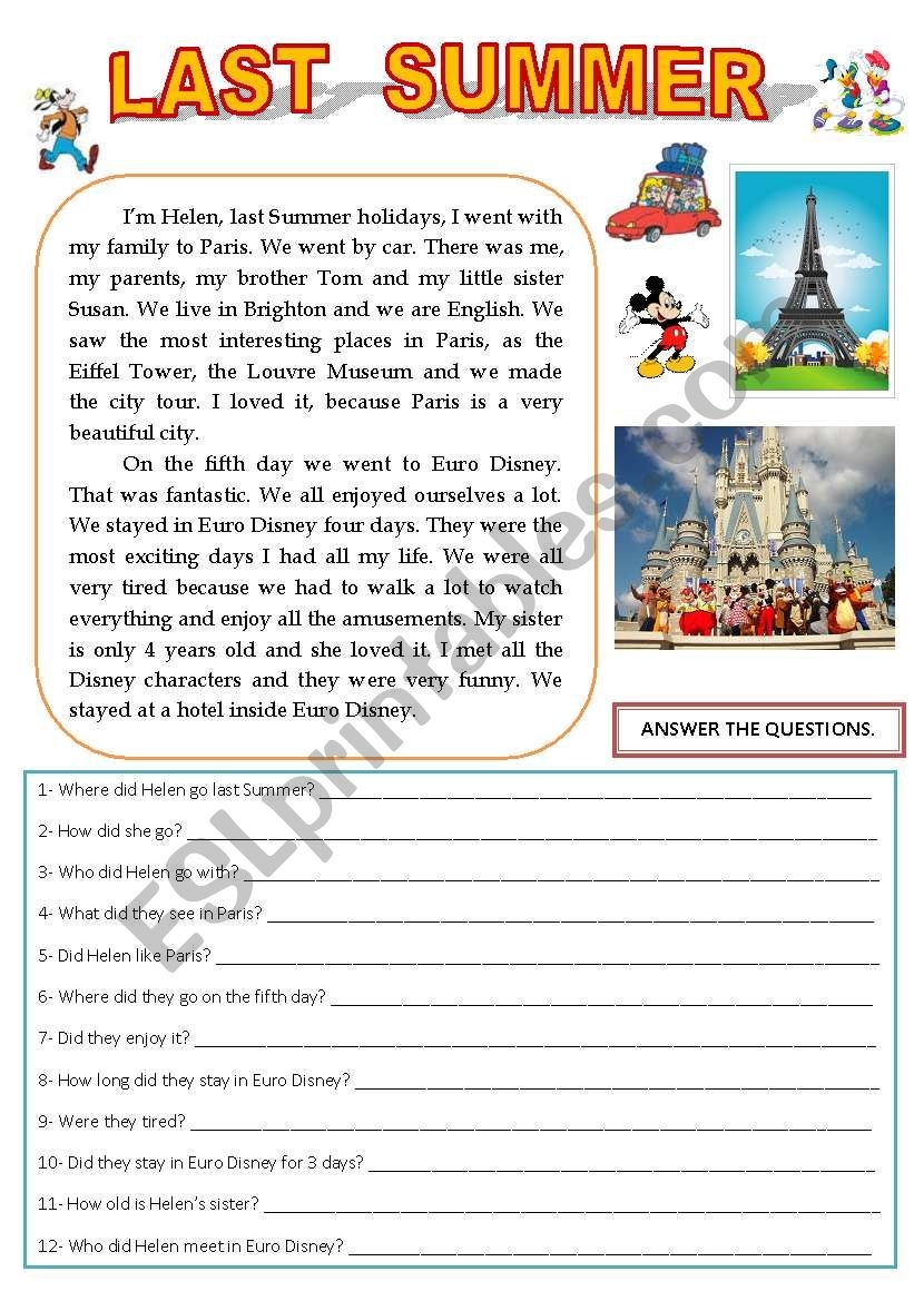 LAST SUMMER READING AND COMPREHENSION ESL Worksheet By Sandytita