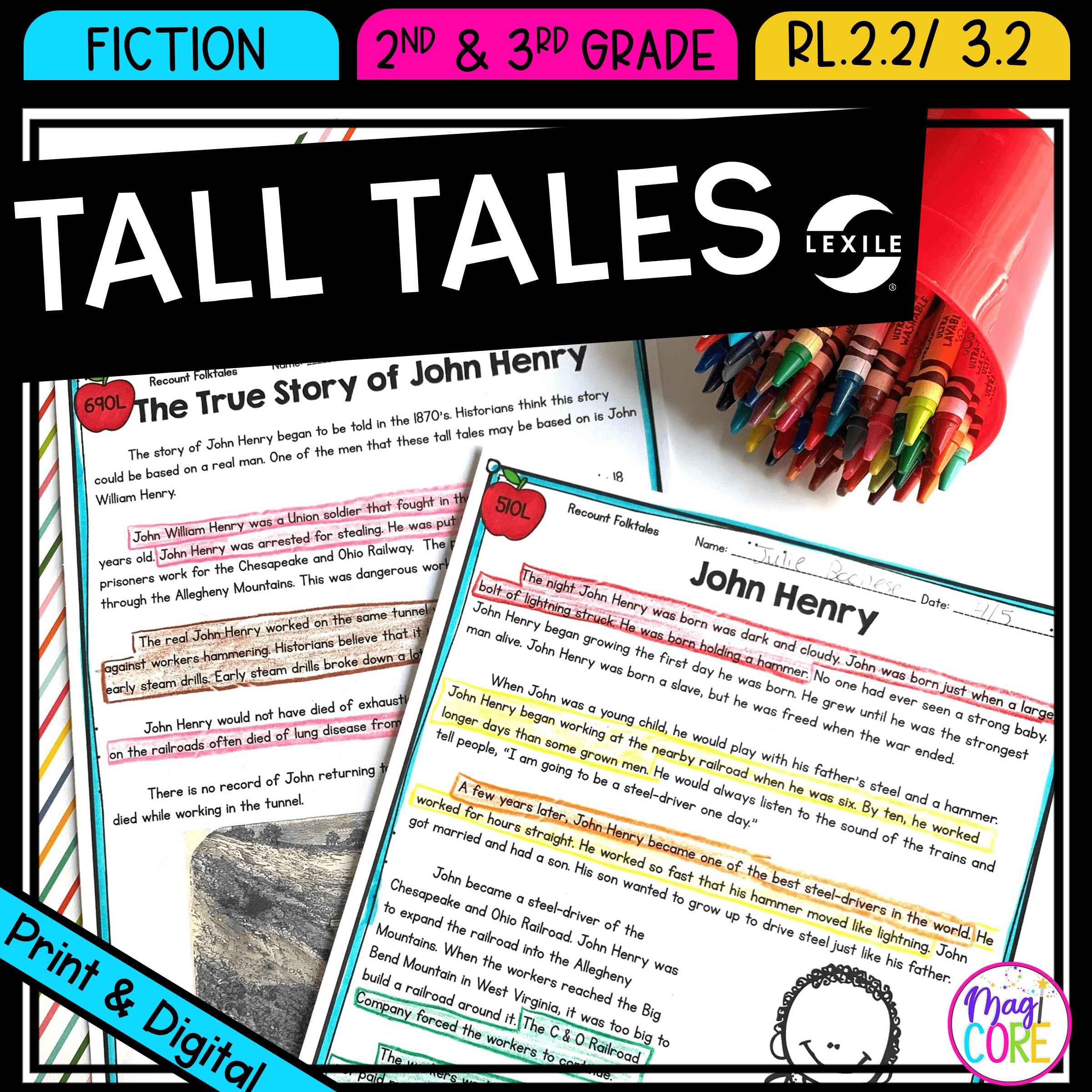 Retell Stories Tall Tales Reading Passages Worksheets RL 2 2 RL 3 2 RL2 2 RL3 2