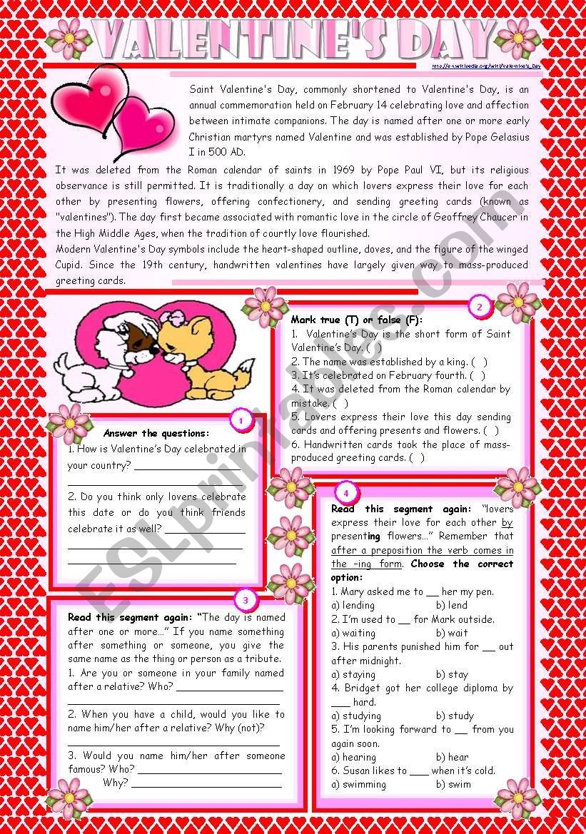 Valentine s Day Reading Comprehension Worksheet Free Printable