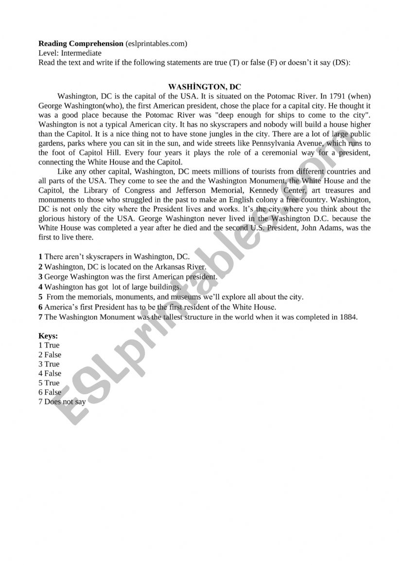 Washington DC Reading Comprehension ESL Worksheet By Zhigbaeva