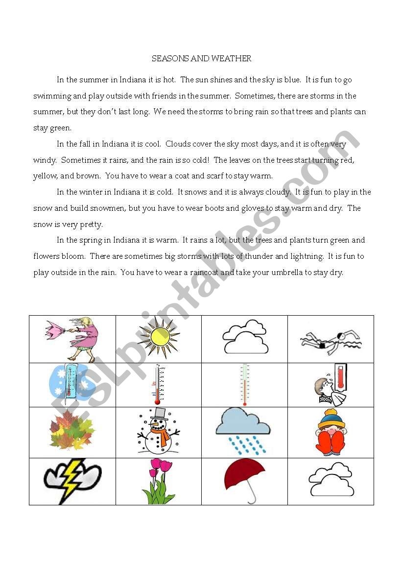 Seasons And Weather Reading Comprehension ESL Worksheet By Sharpsa123