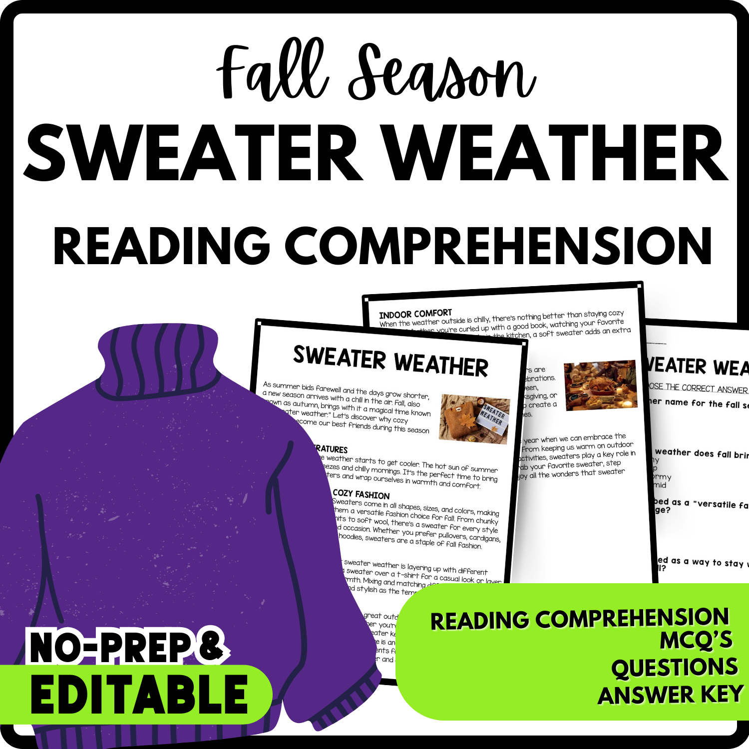 Sweater Weather Reading Comprehension Worksheet Teachers Stock