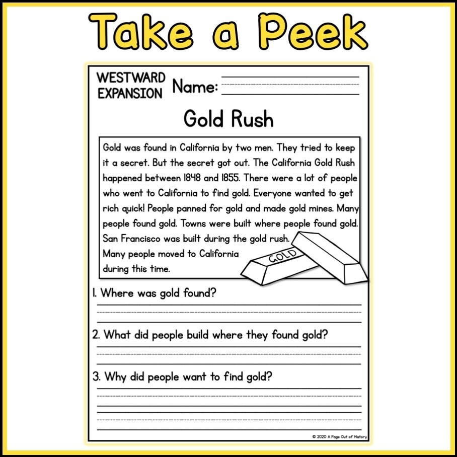 Engage your students, spark their curiosity, and help them develop essential reading skills with our interactive worksheet. Make learning about Westward Expansion fun and engaging for your students today!