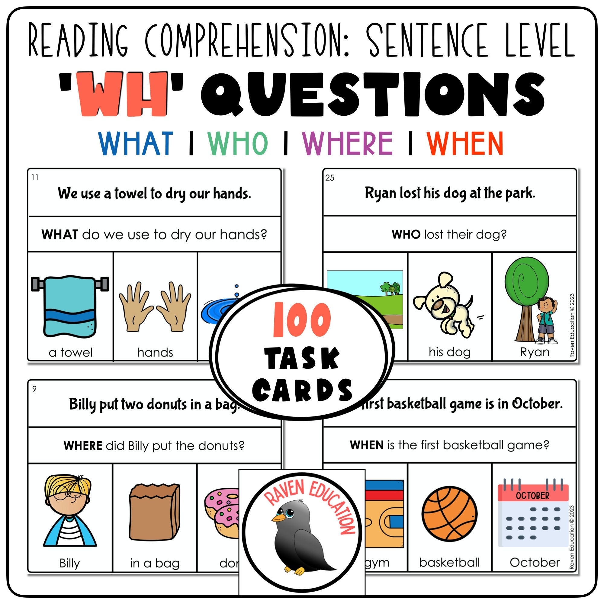 Sentence Level Reading Comprehension Wh questions what Who Where When 100 Task Cards Etsy